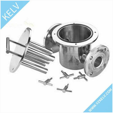 產(chǎn)品簡介 MG系列管道強(qiáng)磁除鐵器(簡稱MG除鐵器),用于清除鐵質(zhì)污染物(如鐵銹、鐵屑)和其它細(xì)小的鐵磁性雜質(zhì),可有效提高生產(chǎn)線上的產(chǎn)品純度,保護(hù)關(guān)鍵設(shè)備免受鐵質(zhì)顆粒的破壞。MG除鐵器采用三維有限元分析法最優(yōu)化設(shè)計(jì)磁棒磁路及分布。整機(jī)為全不銹鋼結(jié)構(gòu)材料。其核心磁棒為釹鐵硼超強(qiáng)永磁材料,表面磁場強(qiáng)度峰值大于12000高斯,為世界最高等級材料。磁棒和連接件之間采用連續(xù)不銹鋼焊接。上蓋可采用快開式或衛(wèi)生卡箍設(shè)計(jì)。MG管道強(qiáng)磁除鐵器廣泛應(yīng)用于食品、金屬加工、制藥、化工、礦業(yè)、陶瓷、造紙等多個(gè)行業(yè),為客戶解決生產(chǎn)中碰到的難題。產(chǎn)品的突出性能和超長壽命得到國內(nèi)外知名企業(yè)的一致認(rèn)可,如貴公司或客戶在質(zhì)量與性能上有更高的要求,MG除鐵器將是絕佳選擇! MG除鐵器細(xì)分為2個(gè)系列:MGS系列,密集小直徑磁棒排布,適合捕捉極微小的鐵質(zhì);MGP系列,紙漿專用型,適合捕捉大顆粒的鐵質(zhì)。主要規(guī)格參數(shù) ■ 子系列MGS/MGP ■ 口徑DN25-DN600 ■ 磁場峰值(Gauss) 6000/12000 ■ 適用溫度(℃) <60,高溫型可定制 ■ 殼體材質(zhì)304,316L ■ 設(shè)計(jì)壓力(MPa) 0.6,1.0典型適用行業(yè)及流體 ■ 適用行業(yè):食品飲料、金屬加工、制藥、化工、陶瓷、造紙等 ■ 適用液體類型:含微量鐵質(zhì)顆粒的液體。 ■ 主要分離作用:捕捉鐵質(zhì)顆粒 ■ 分離類型:磁性捕捉 除鐵器如何清理: 流體除鐵器清理頻率:根據(jù)處理物料中鐵雜質(zhì)的含量多少、每小時(shí)物料處理量等參數(shù)確定,一般磁棒表面吸附的粉狀鐵雜質(zhì)厚度不宜超過10mm,定期及時(shí)清理,從而保持 佳的使用效果。 流體除鐵器清理步驟:清理流體除鐵器時(shí),首先磁芯固定螺絲打開,取出磁芯,清理吸附在磁棒表面的鐵雜質(zhì),然后再將磁芯安裝到筒體,固定,安裝磁芯時(shí)檢查密封墊圈是否完全卡在墊圈卡槽內(nèi),避免墊圈錯位引起工作過程中物料泄露。在清理磁棒表面的鐵雜質(zhì)時(shí),可以借助厚的棉手套、抹布、托盤等工具,有需要時(shí),可以用水清洗。 |